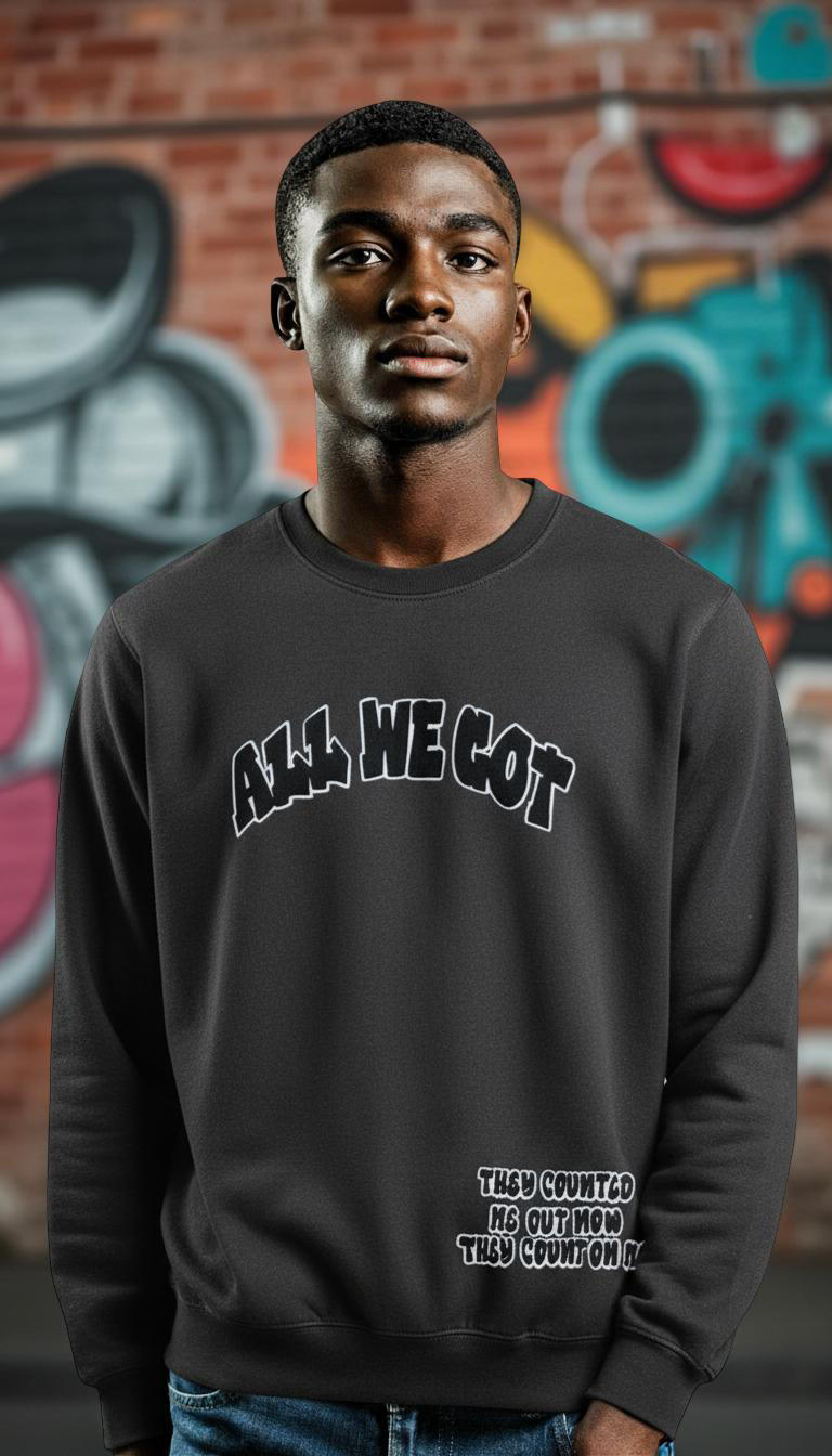 Shop Clear All | Women | Daddy’s & Me | Mommy & Me | Men | Accessories | Teens | Kids | Tops | Bottoms | Sale | Filters Categories All Women Daddy’s & Me Mommy & Me Men Accessories Teens Kids Tops Bottoms Sale Filter Clear Filter Quick View $20 Long Sleeve Tshirt Sale Price: $20.00 Original Price: $45.00 Sale Quick View They Counted me Out Pull Over Sale Price: $65.00 Original Price: $100.00 Sale Quick View They counted me out sets Sale Price: $120.00 Original Price: $150.00 Sale Quick View ALL WE GOT Trademark hoodie $40.00 Quick View AWG jacket Sale Price: $80.00 Original Price: $100.00 Sale Quick View BLAME SOCIETY white from $50.00 Quick View Loyalty at First Sight $60.00 Quick View Kids jogger sets Sale Price: $65.00 Original Price: $100.00 Sale Quick View "Livin in the 90's" $55.00 Quick View "Blame Society" from $45.00 No results found No results match your search. Try removing a few filters.